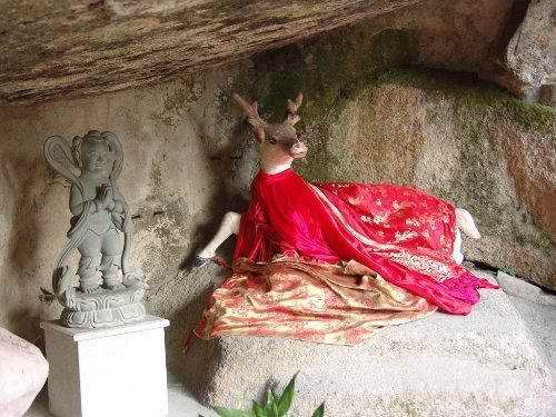 特色景觀:有六合洞、朝天洞、宛在洞等洞景。三寶殿后有宛在洞,洞中伏著一雙泥塑白鹿,口向石罅。夏季炎熱時,罅中常有煙霧涌出,縷縷可見,故稱“白鹿含煙”,為廈門小八景之一。